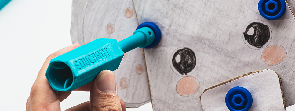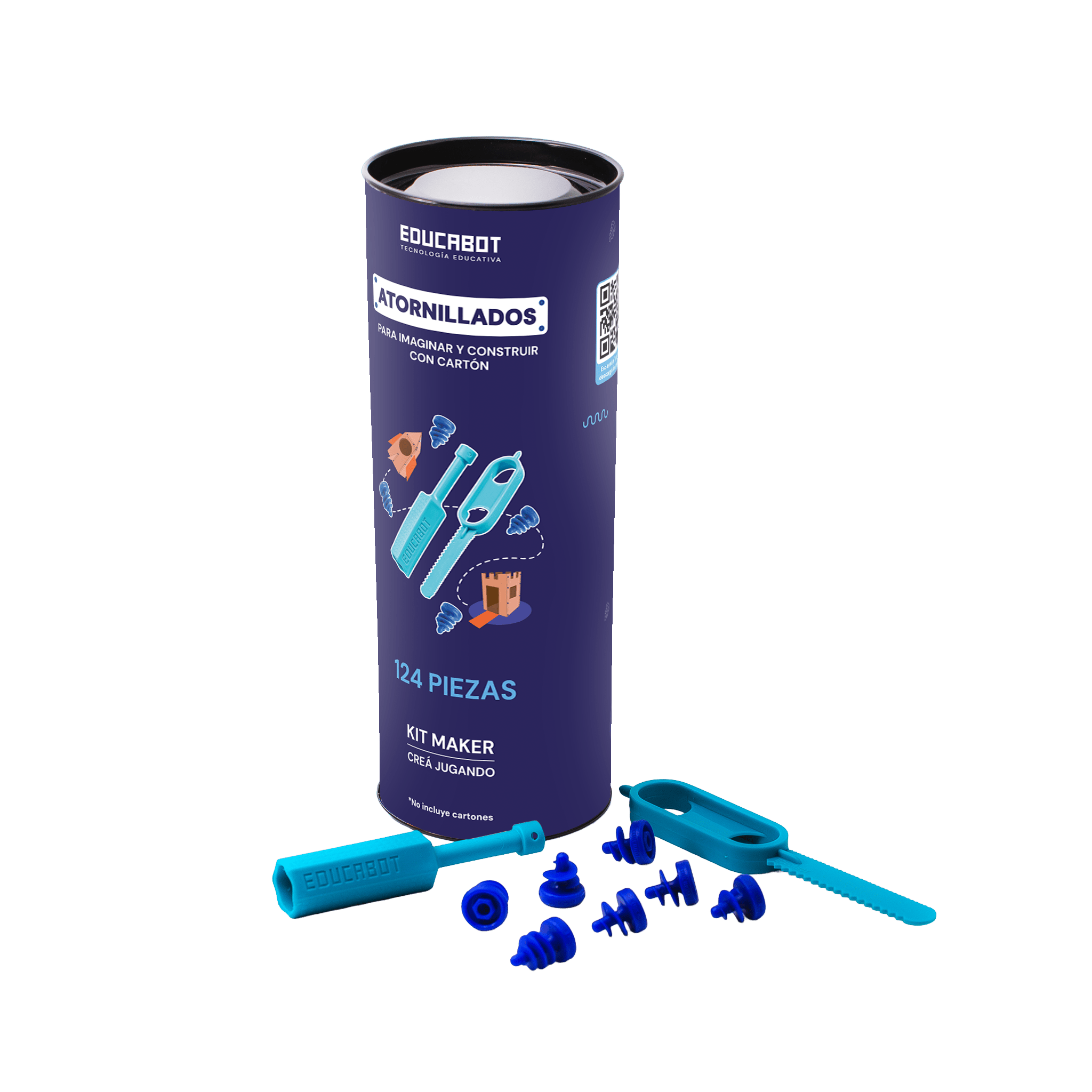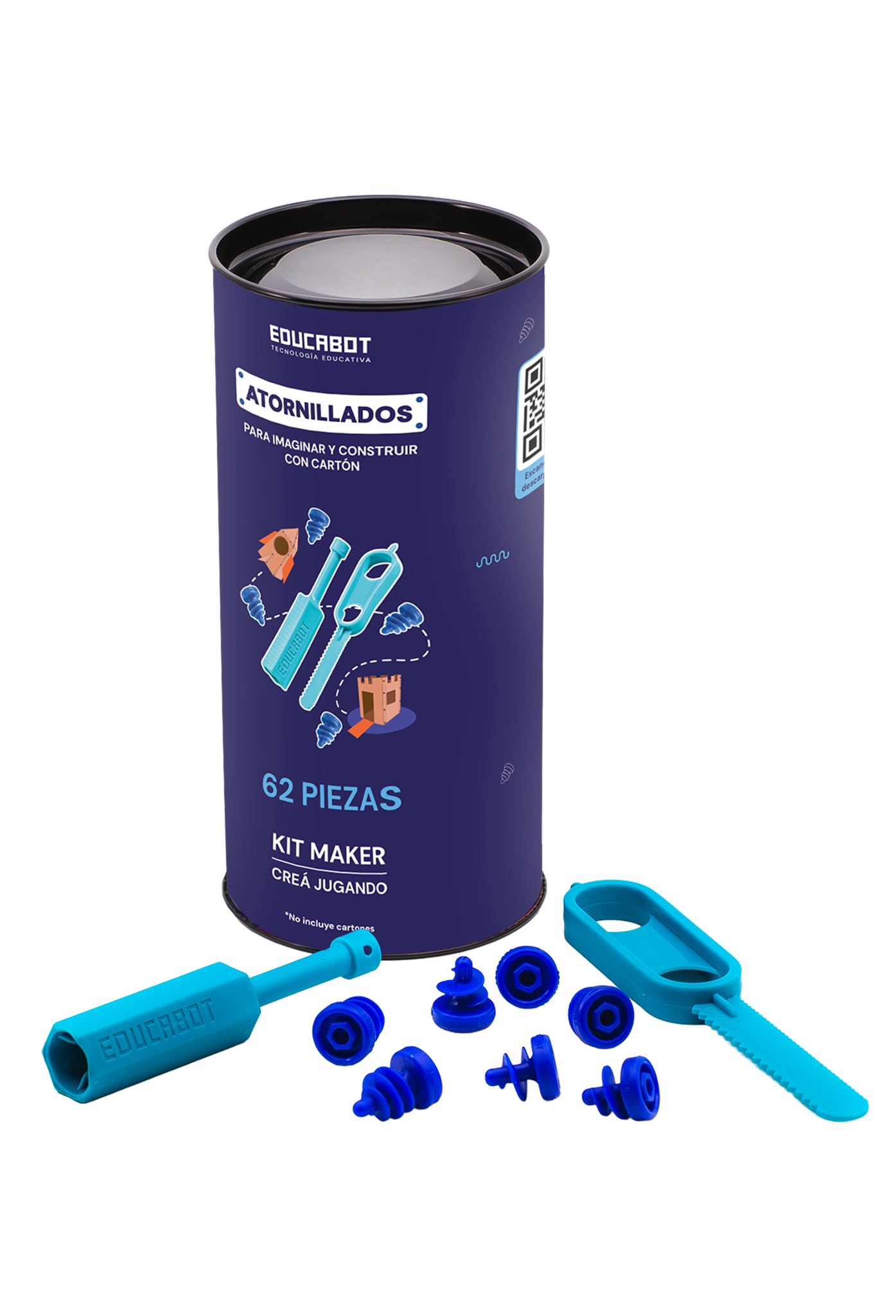 Atornillados es un kit de herramientas y piezas plásticas para construir figuras con cartón. A través del armado y la experimentación, el kit promueve el desarrollo de la motricidad fina, el pensamiento lógico y la creatividad.